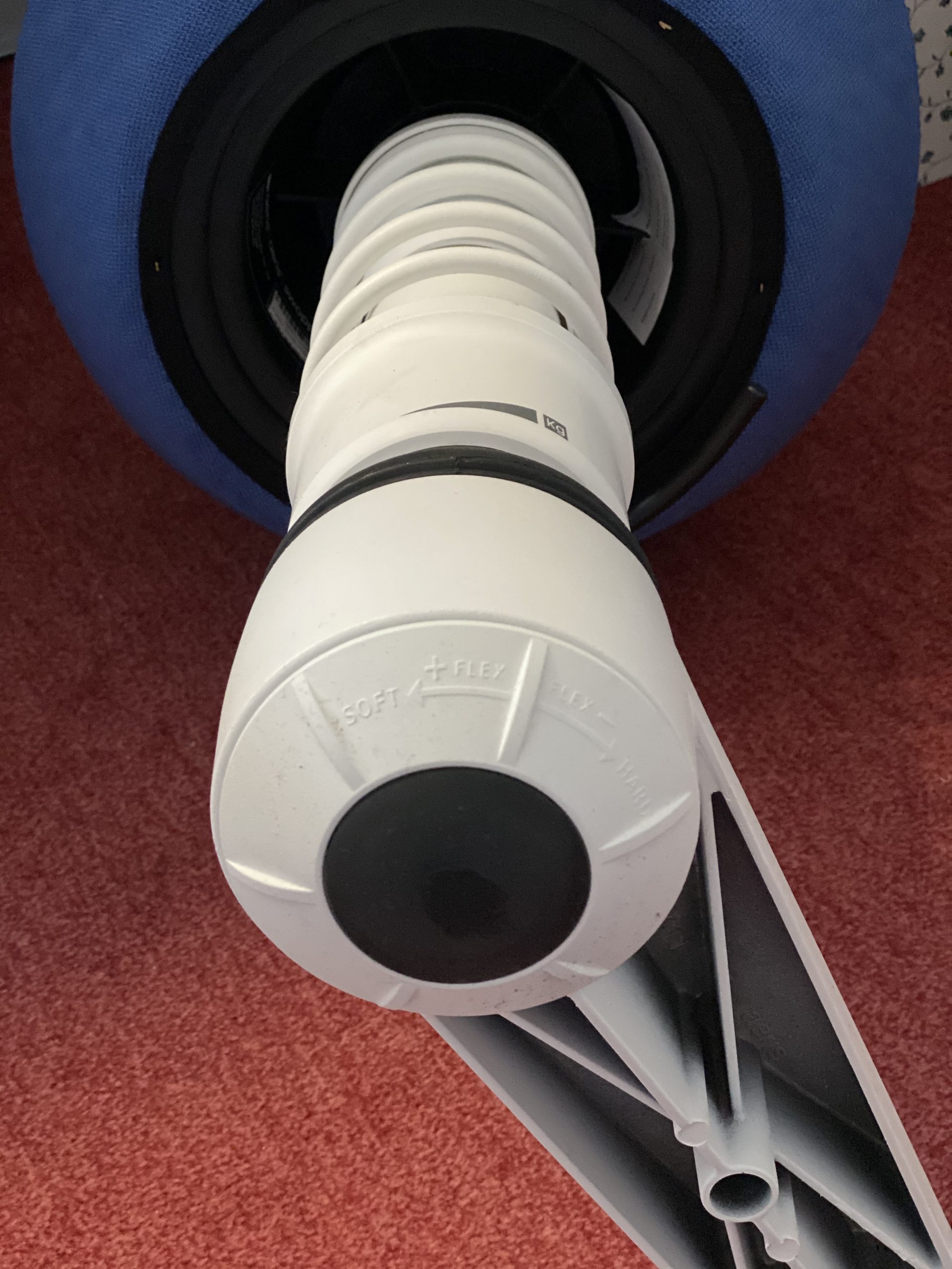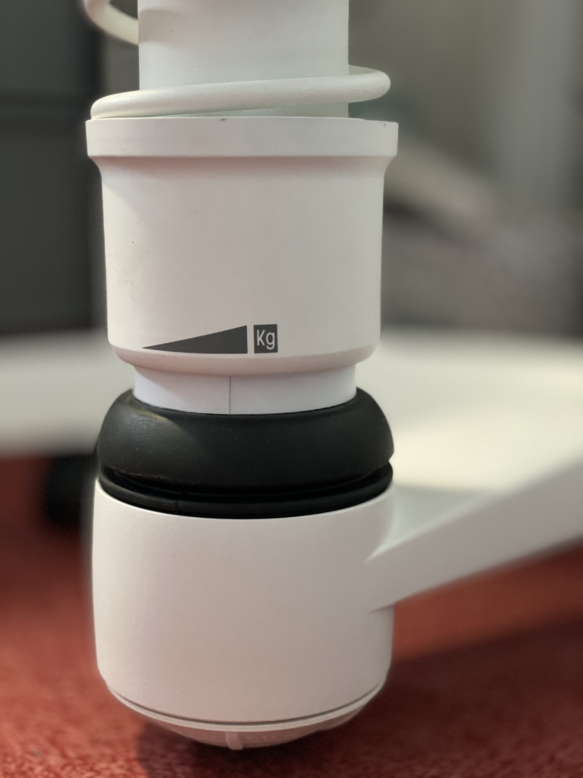 Nachdem mein Sohn bereits das kleine Pendant, den Swoppster, im Einsatz hat, habe ich den Kontakt zu Aeris gesucht und einen Swopper für mich in Auftrag gegeben. Mit kurzer Lieferzeit von zwei Wochen erreichte mich ein Paket mit wenigen Einzelteilen. In dem Paket lagen Bodenring mit Rollen, ein Federbein und der eigentliche Sitz. Der Aufbau dauerte keine 5 Minuten. Die Rollen werden in den Ring gedrückt. Dann wird das Federbein in den Ring und der Sitz oben auf das Federbein gesteckt. Fertig ist der Bürostuhl.