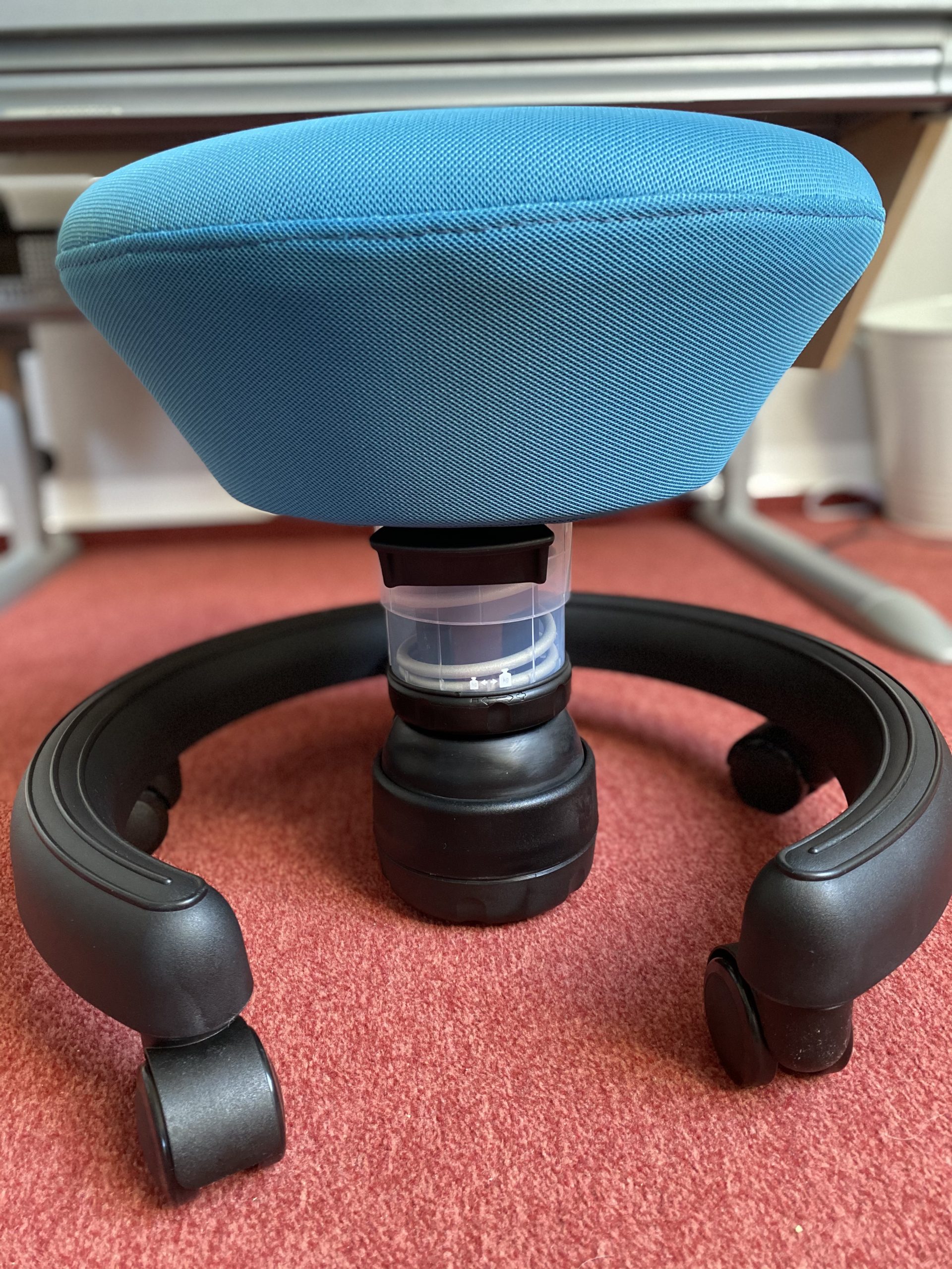 Der Bezug des Schreibtischstuhls ist atmungsaktiv und sogar waschbar. Man sitzt sehr angenehm auf dem Stuhl ohne dabei zu schwitzen. Das ist ja oft ein Nachteil anderer Materialien. Deshalb ist es sehr erfreulich das hier ein atmungsaktiver Bezug zum Einsatz kommt. Der Hocker ist konvex geformt. Dadurch wird verhindert, das man in Sitzmulden sitzt. Diese verursachen Druckstellen und lassen uns schnell in eine Sitzposition mit Rundrücken fallen. Der Swoppster sorgst automatisch für eine aufgerichtete und ergonomische Sitzposition. Der Swoppster eignet sich bis zu einem Körpergewicht von 50 kg. Danach kann man auf das größere Modell, den Swopper, wechseln.