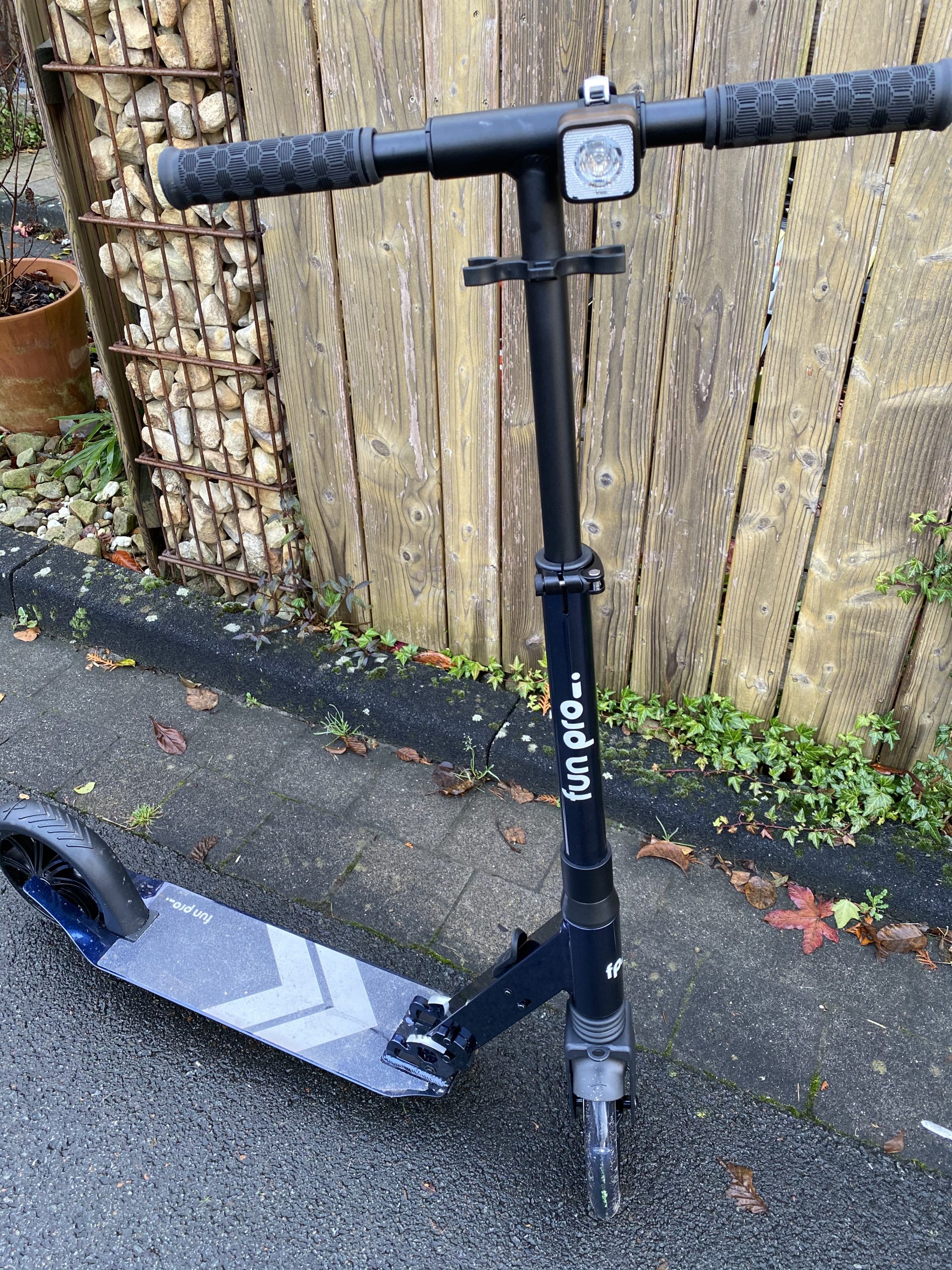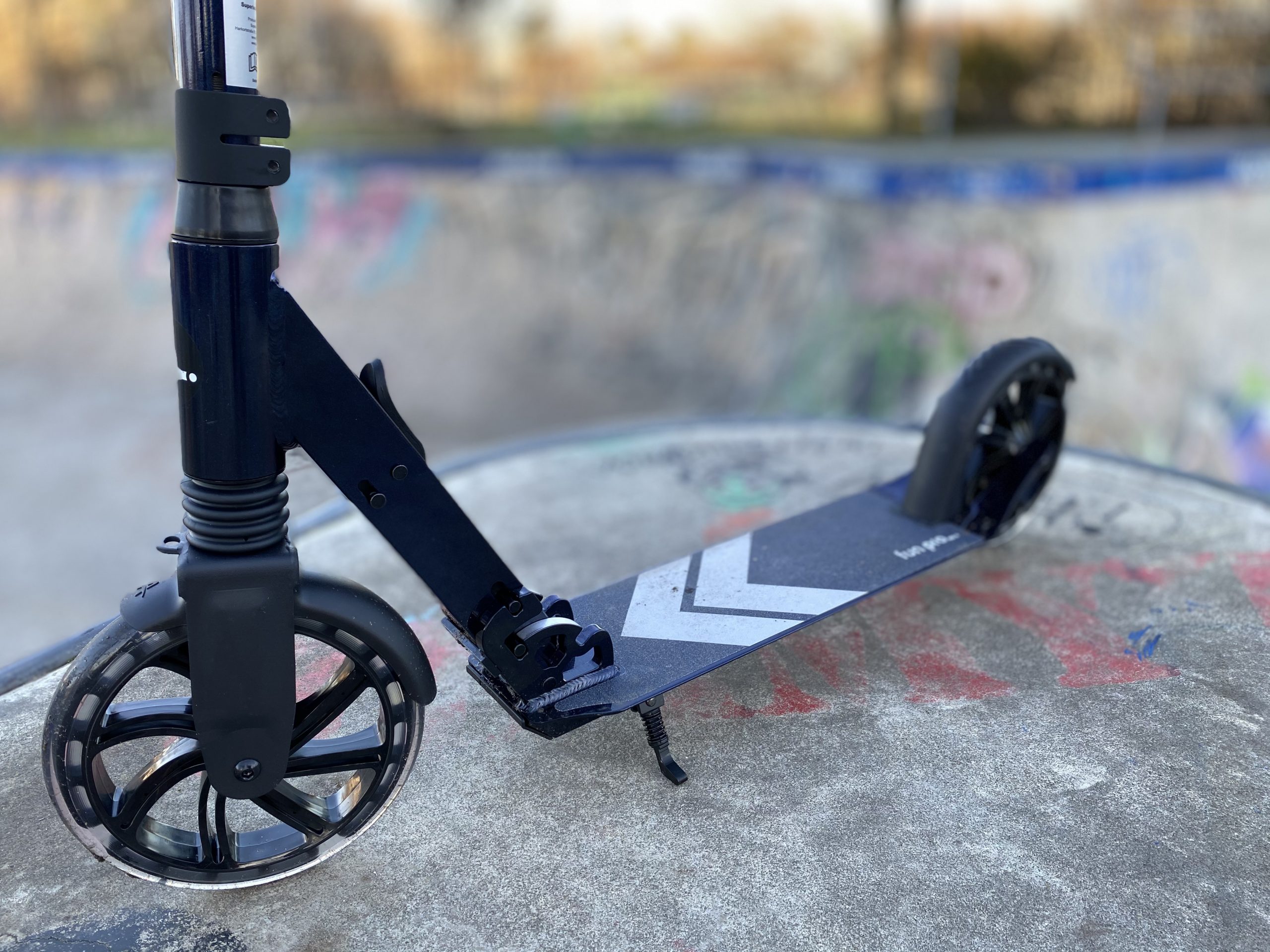 Die Fahrt auf dem Roller macht wirklich Spaß. Ich habe noch ein kleines Vorderlicht angebracht, damit man auch bei Dämmerung gut und sicher damit fahren kann. Ich war erst skeptisch, ob der Klappmechanismus eines Rollers gut funktioniert. Doch bei diesem Roller ist er sehr robust und vor allem rüttelfrei. Man hat zu keiner Zeit das Gefühl, das die Konstruktion wackelig ist.