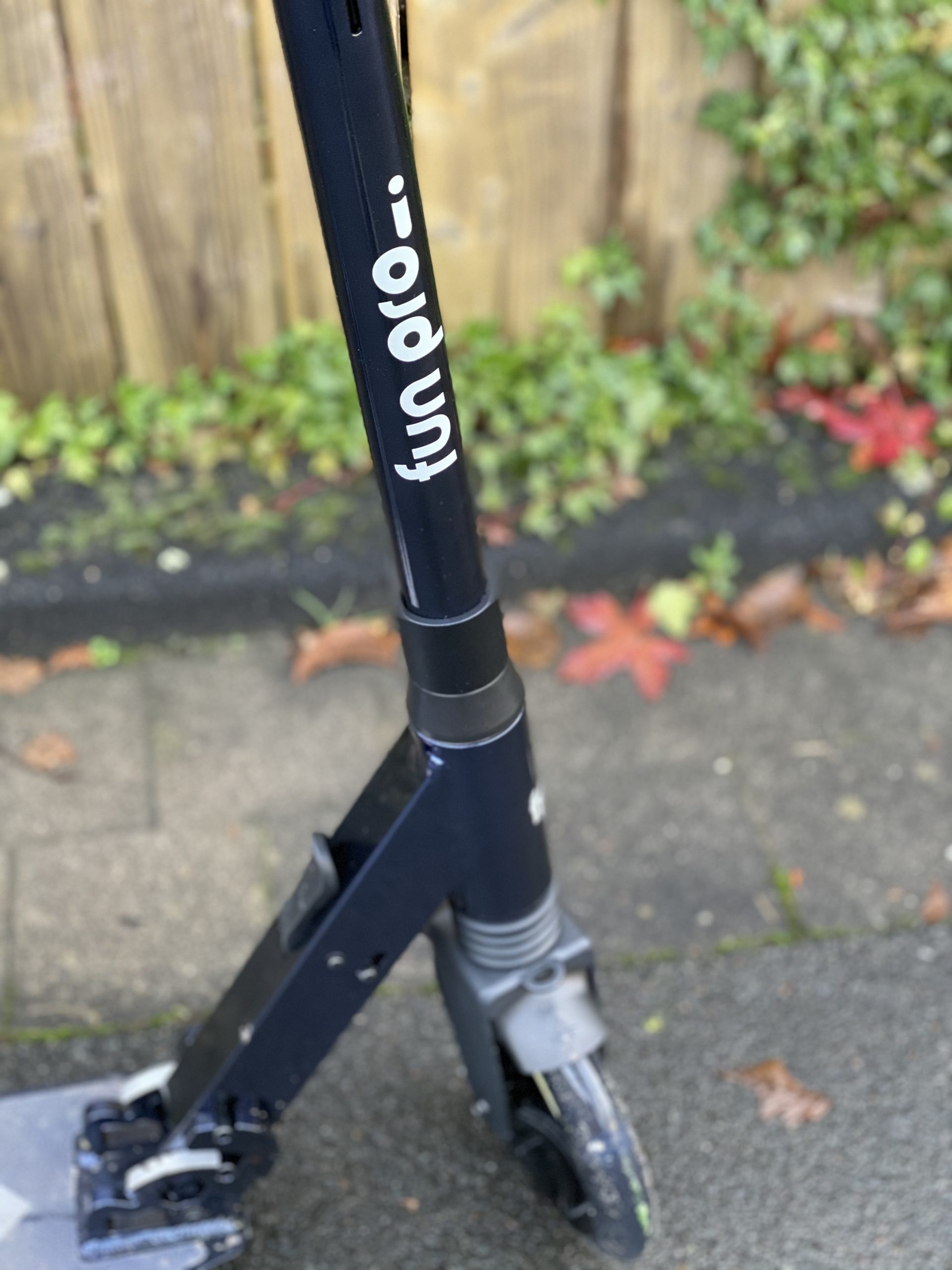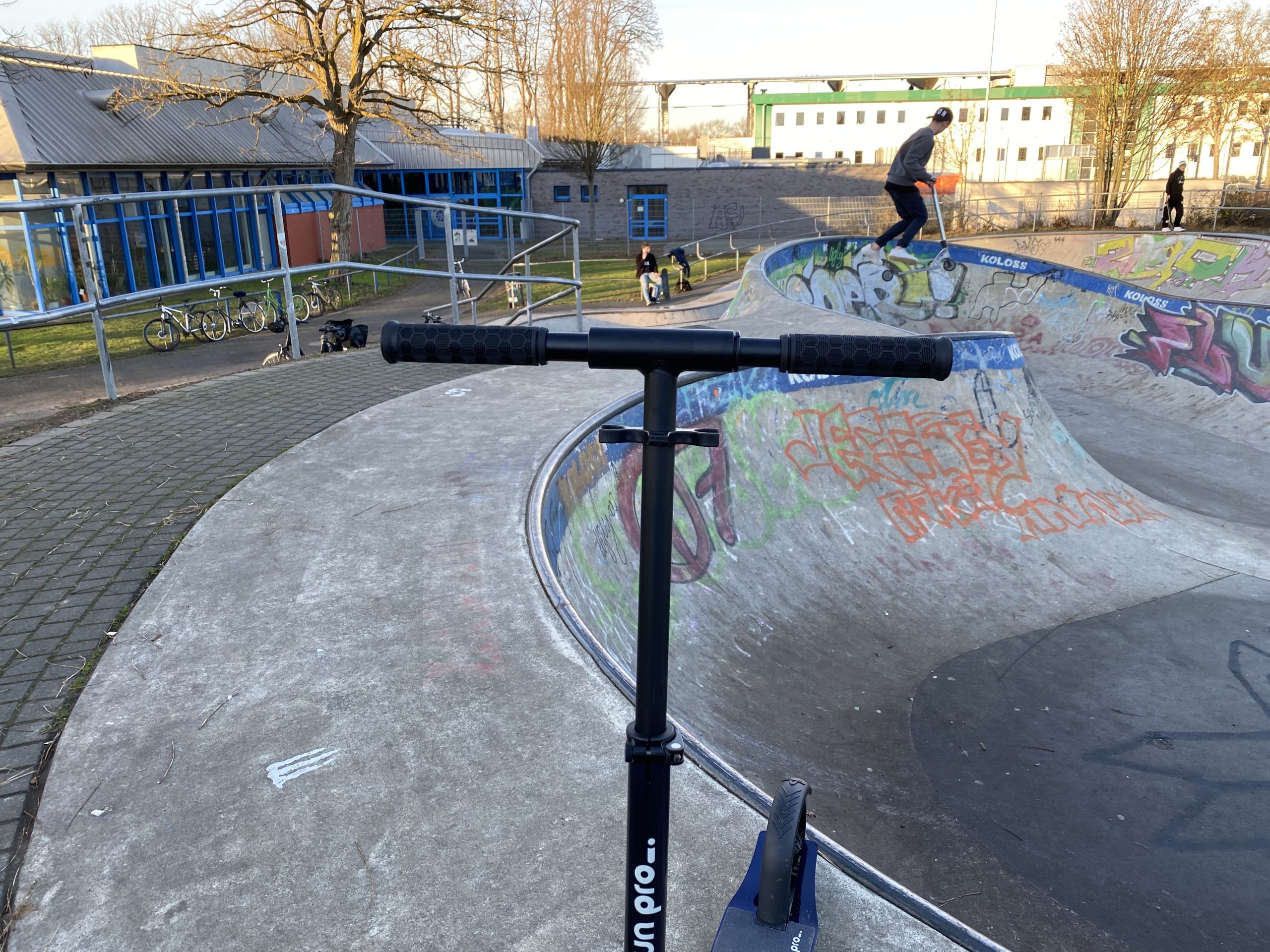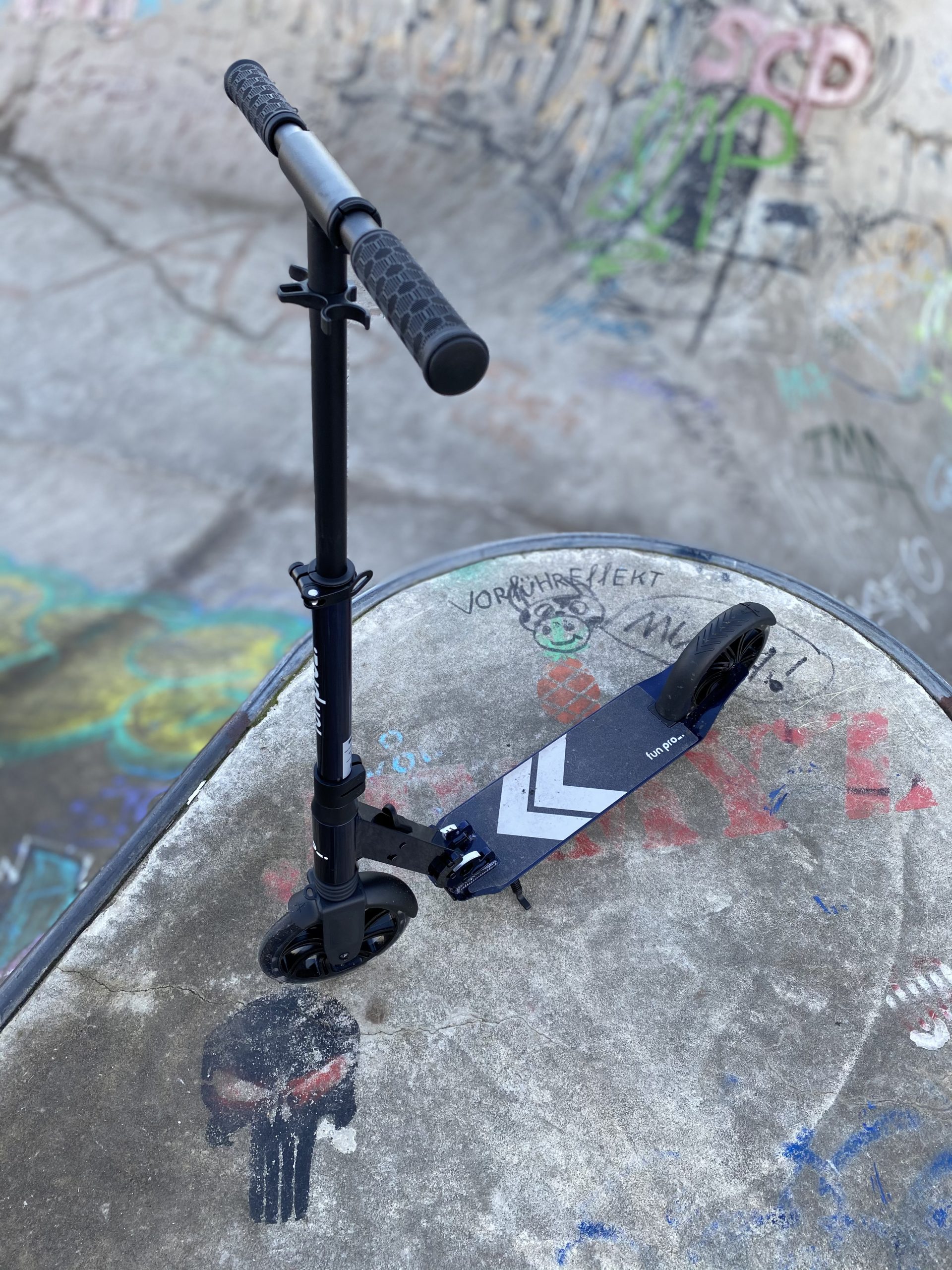 Da auch ich auf der Suche nach einem Roller bin, habe ich mir die Produkte näher angeschaut. Das Unternehmen bietet mit dem Modell „fun pro ONE“ einen Roller für Einsteiger bis 6 Jahren. Das Modell verfügt über zwei Rollen an der Vorderseite. Ebenso der „fun pro TWO“, der sich an Kinder bis 10 Jahren richtet. Das Modell „fun pro THREE“ ist ein 2-Rad-Roller für Kinder ab 6 Jahren. Dann gibt es noch einen Stuntscooter und das Modell „fun pro FIVE“ für Kinder ab 10 Jahren. Letzteres Modell hat mir das Unternehmen für einen Test zugesandt.